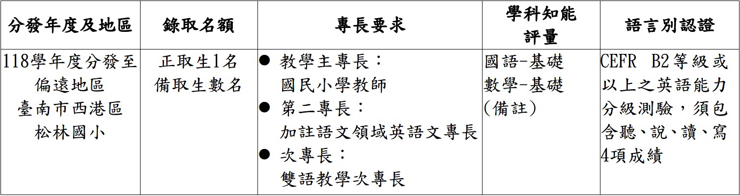 115學年度臺南市松林國小乙案公費生共計1名,甄選、培育及分發之相關資訊詳如附件,歡迎本校有興趣的師資生(含研究所師資生)報名! 詳情請參閱甄選簡章。 一、受領公費時間: 自115學年度起(至少應領滿2學年公費)。 二、甄選時程: